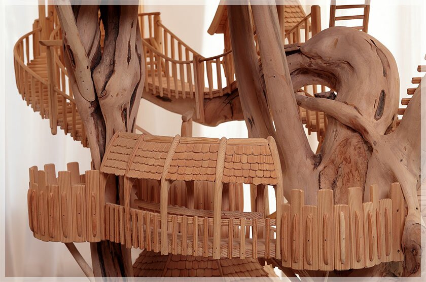 In effect these are the real deal, not models, but real on a very unusual scale. Rob's children love to play with the Bough House that he built for them and the quality of workmanship has stood the test of time - but they are more than a physical thing - you can spend hours wandering the walkways and turrets and paths in your own mind. These are truly inspirational pieces of art.